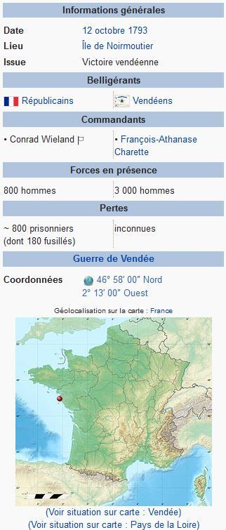 La bataille de Noirmoutier se déroule lors de la guerre de Vendée. Le 12 octobre 1793, les Vendéens s'emparent de l'île de Noirmoutier.