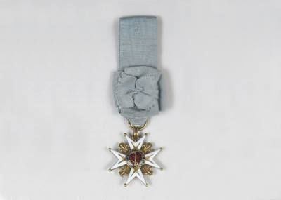 • Commandeur Il porte la croix attachée à un large ruban de la même couleur et mis en écharpe.