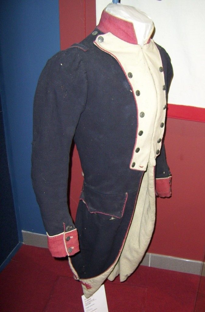 - Un bouton en métal doré, marqué de l’inscription «Liberté. Garde Républic» et estampé d’un cor, est cousu de part et d’autre de la fente au niveau de la taille.