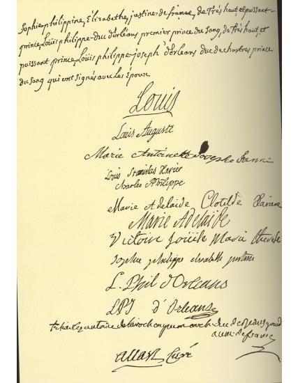 Après le dauphin et la dauphine, signent, dans l'ordre protocolaire, les frères du marié, sa sœur, ses tantes et enfin les deux premiers princes du sang.